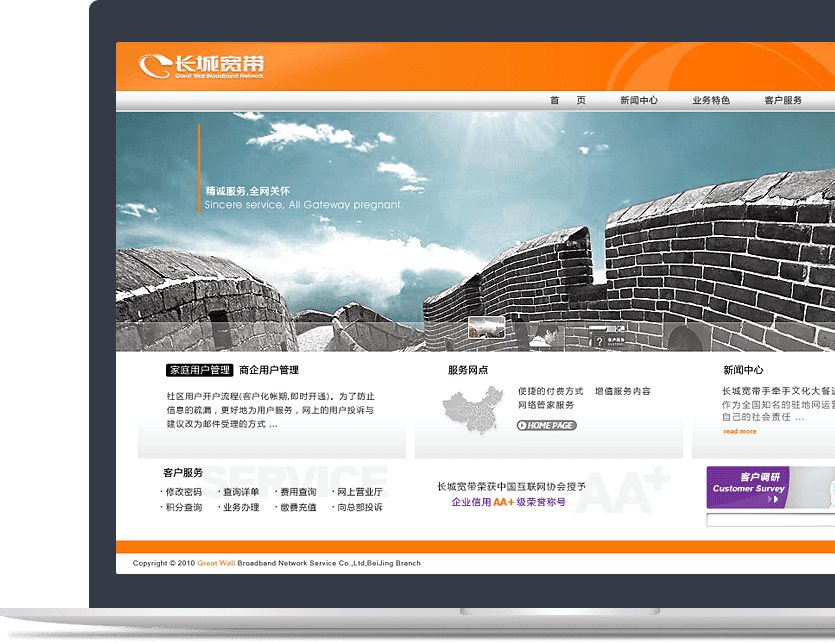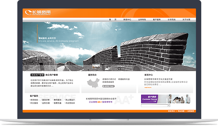 新鴻儒以用戶體驗為核心,為長城寬帶規劃,設計,開發品牌官網,助力長城寬