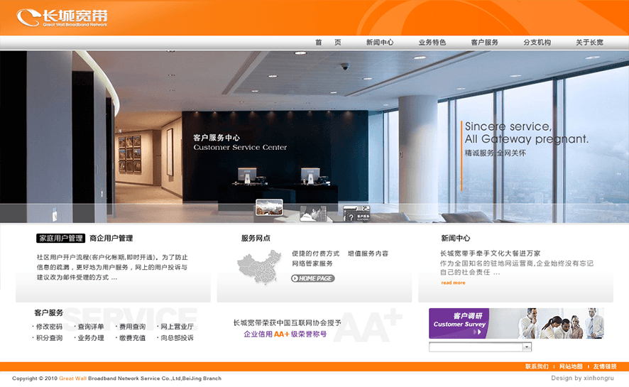 新鴻儒為長城寬帶規劃企業級用戶服務專區、網點查詢