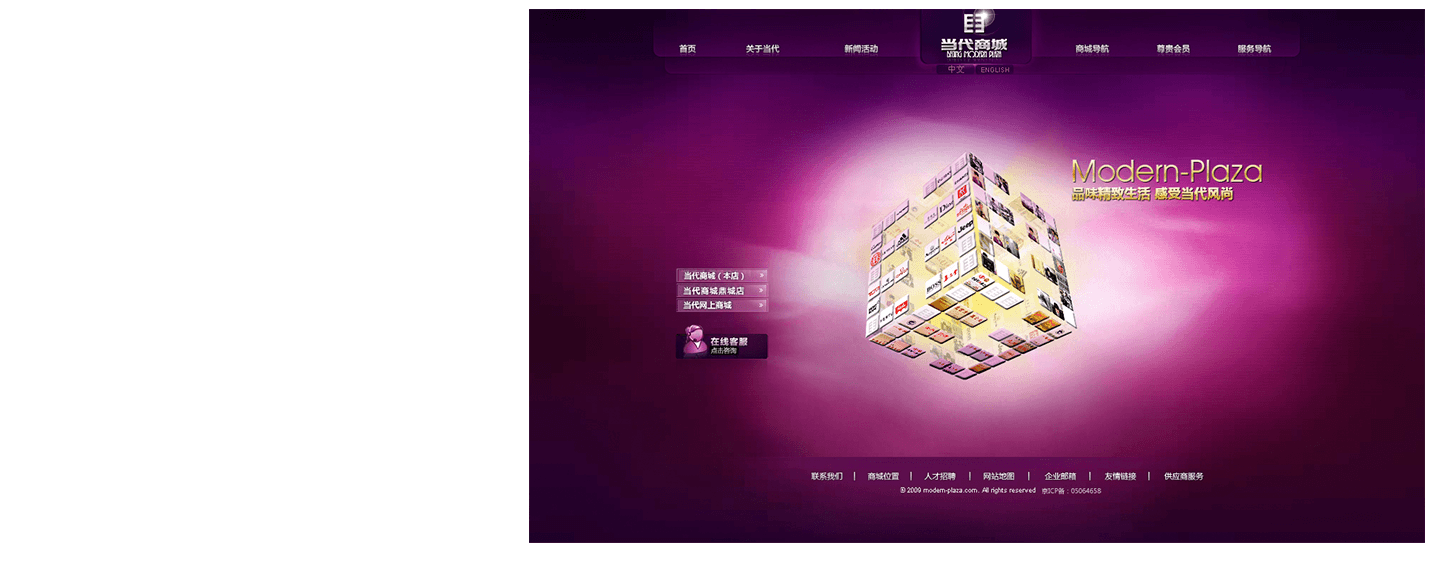 網(wǎng)站整體以時(shí)尚、簡(jiǎn)約和前衛(wèi)為主體風(fēng)格,和當(dāng)代商城“品牌立店,前衛(wèi)經(jīng)營(yíng)”