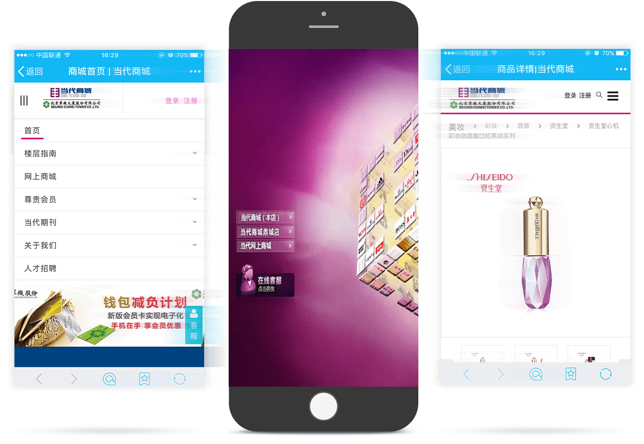網(wǎng)站主視覺采用交互技術(shù),有效傳達(dá)當(dāng)代商城整體品牌形象。