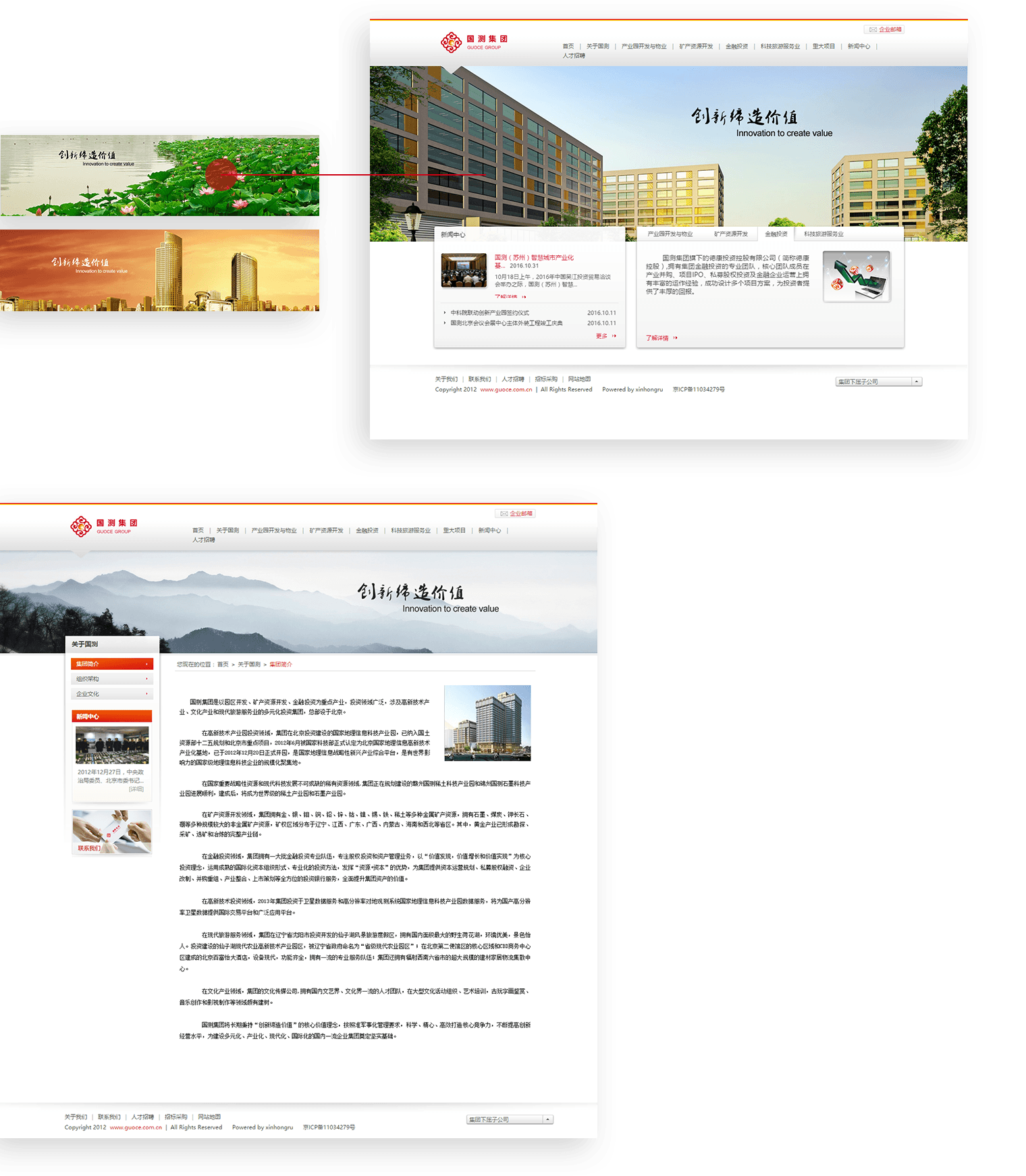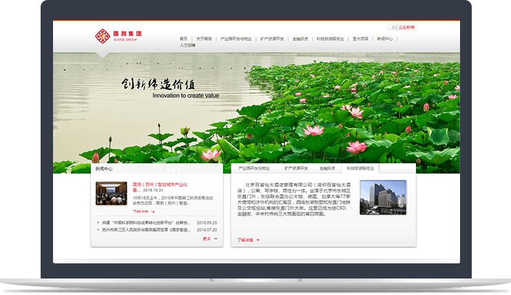 Banner視覺區通過集團形象、荷花、業務等不同角度進行表達,虛實結合、業務與文化相結合,塑造