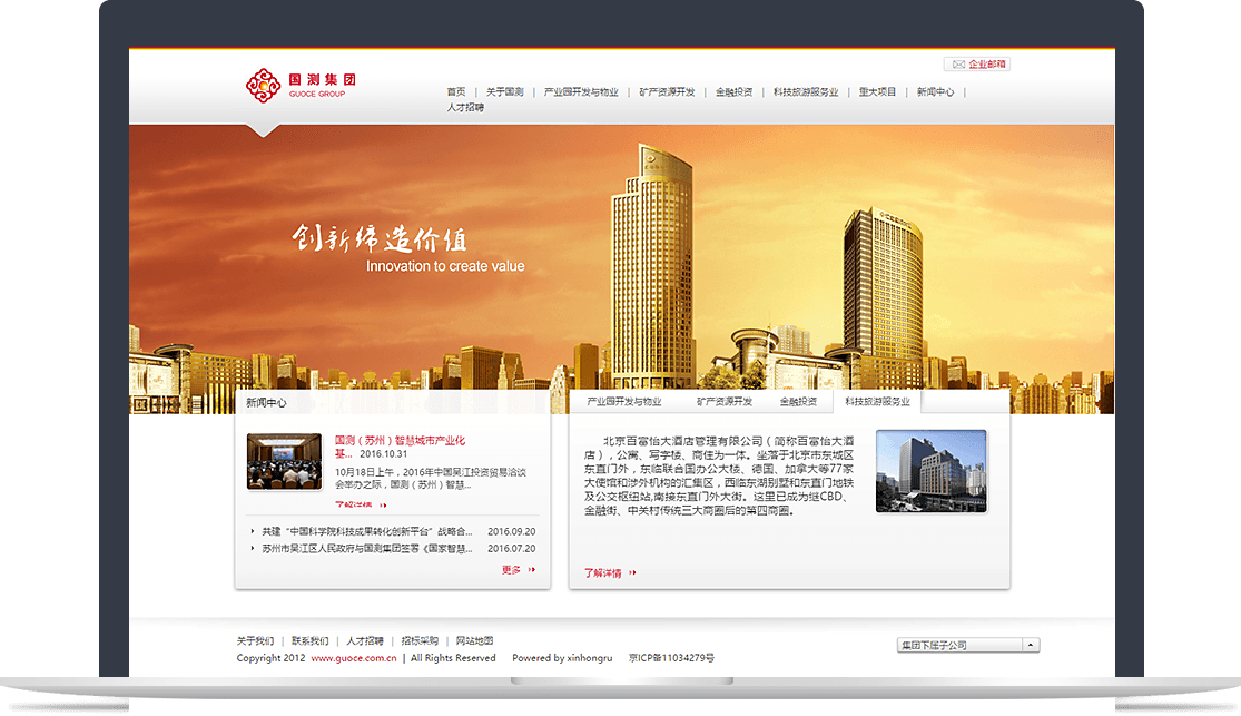 網站整體穩重大氣,簡潔干凈,成功塑造了國測集團多元化的互聯網品牌形象