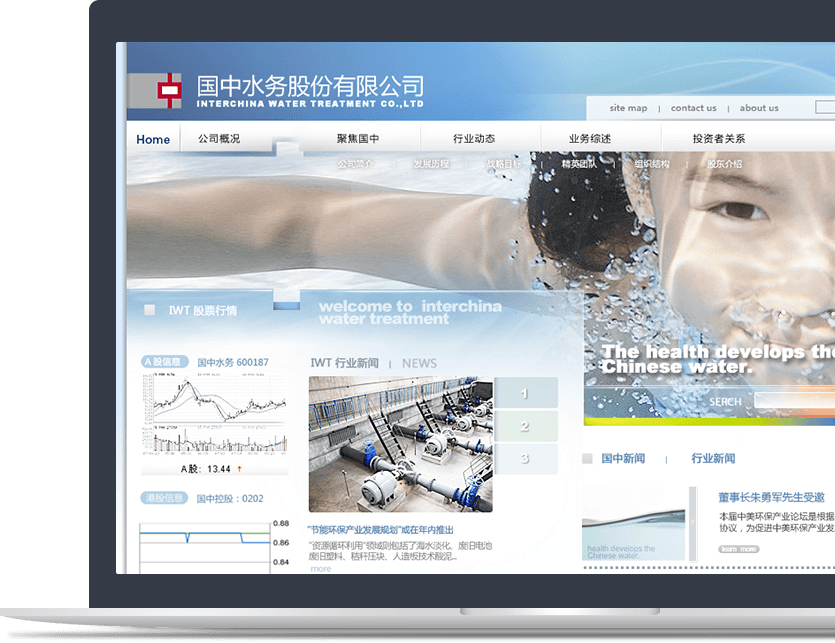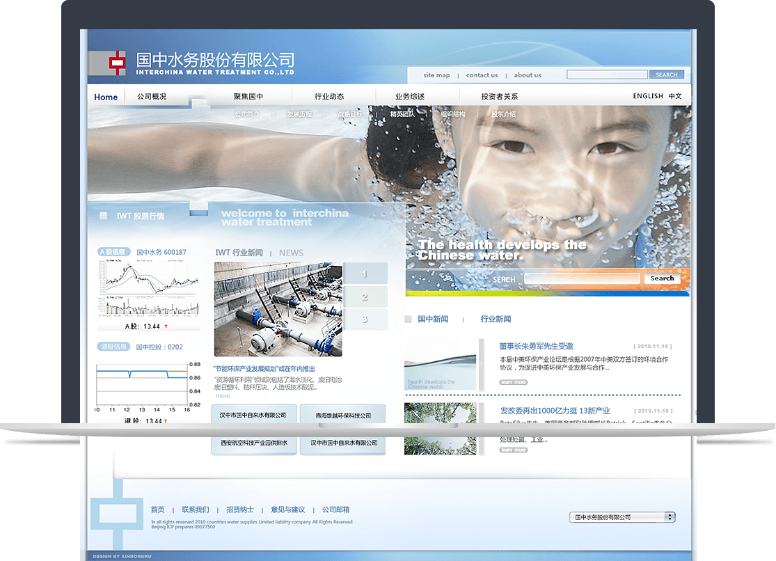 新鴻儒持續為國中控股、國中水務打造官方網站,在兼顧同一體系內企業的視覺統一性的基礎上,通過不