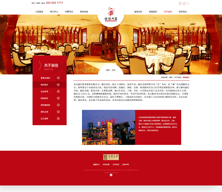渝信川菜作為極具地方特色的知名餐飲企業,其官網形象與品牌定位保持高度一致,以紅色為主